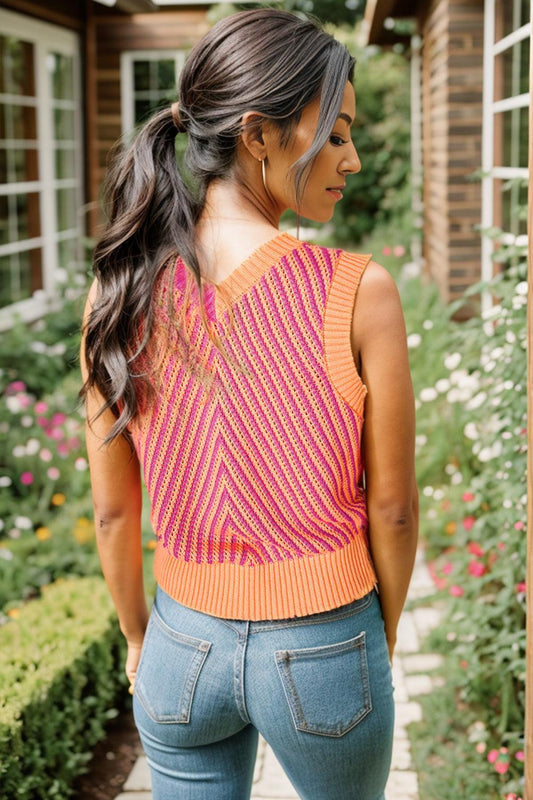 Color Block Scoop Neck Knit Tank