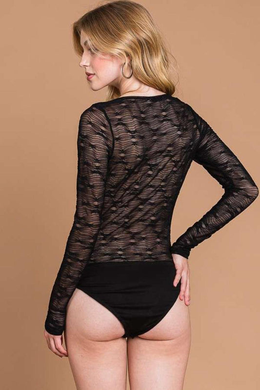 Culture Code Round Neck Mesh Perspective Bodysuit