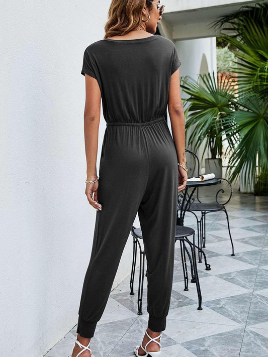 Drawstring Waist Short Sleeve Jogger Jumpsuit