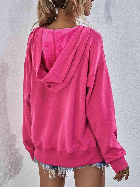 Drawstring Zip Up Sherpa Jacket with Removable Hood