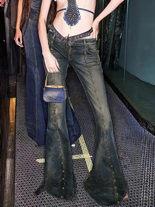 Flared Rivet Grunge Punk Low Waisted Jeans