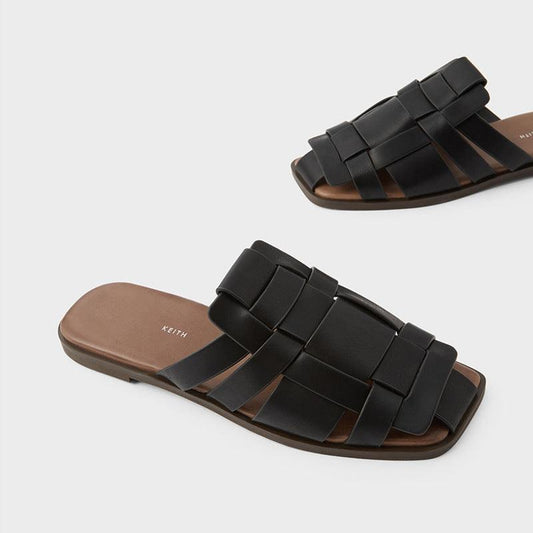 Ladies Woven Shoes Retro Square Toe Casual Mules Sandals
