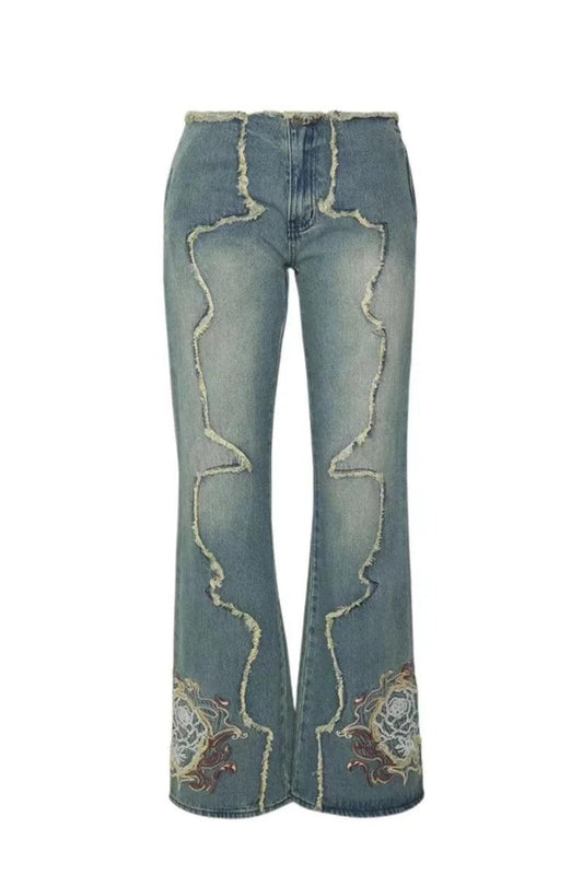 2024 new hot hot girl unique slimming retro fringed embroidery made old straight leg pants for children