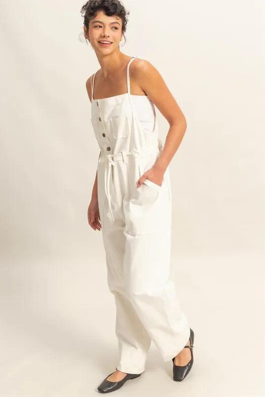 HYFVE Front Pocket Drawstring Denim Jumpsuit