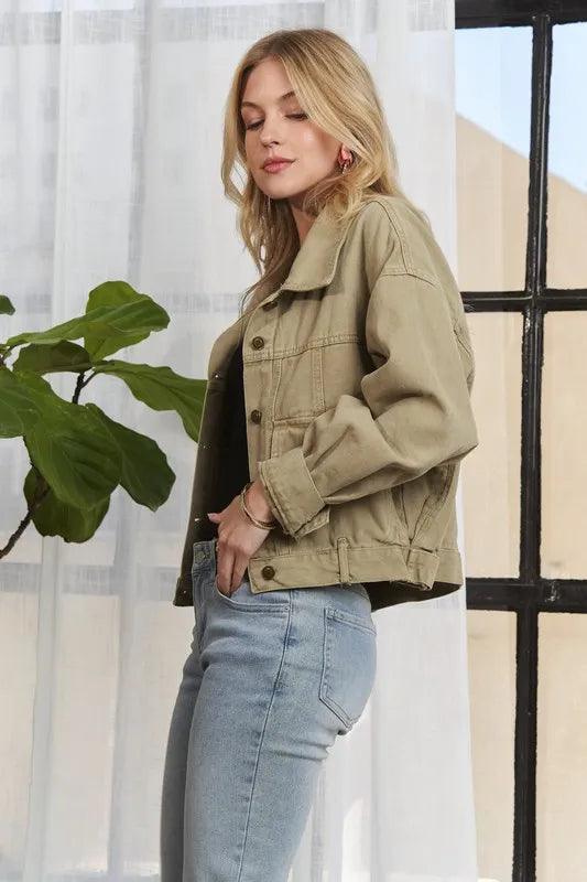 Exposed Seam Snap Down Collared Neck Long Sleeve Top