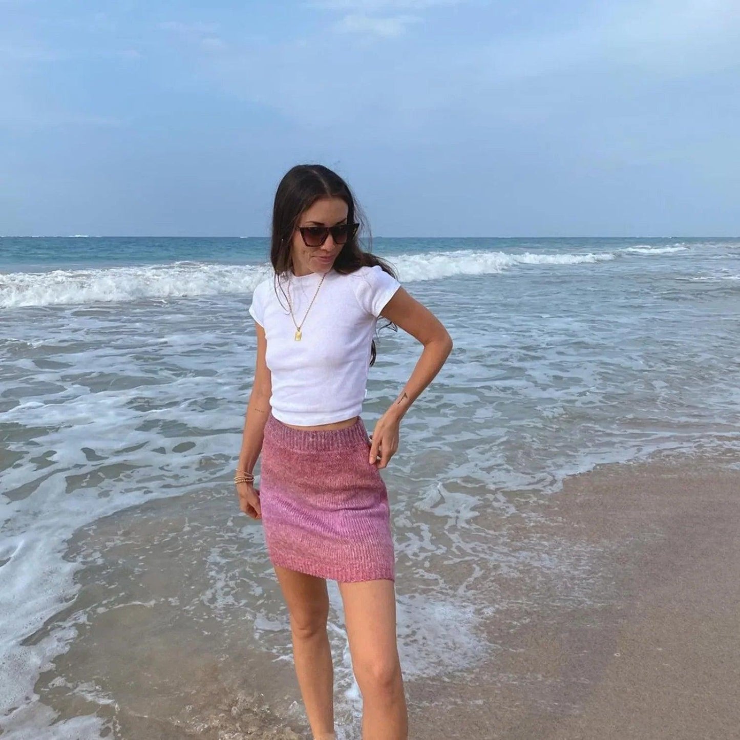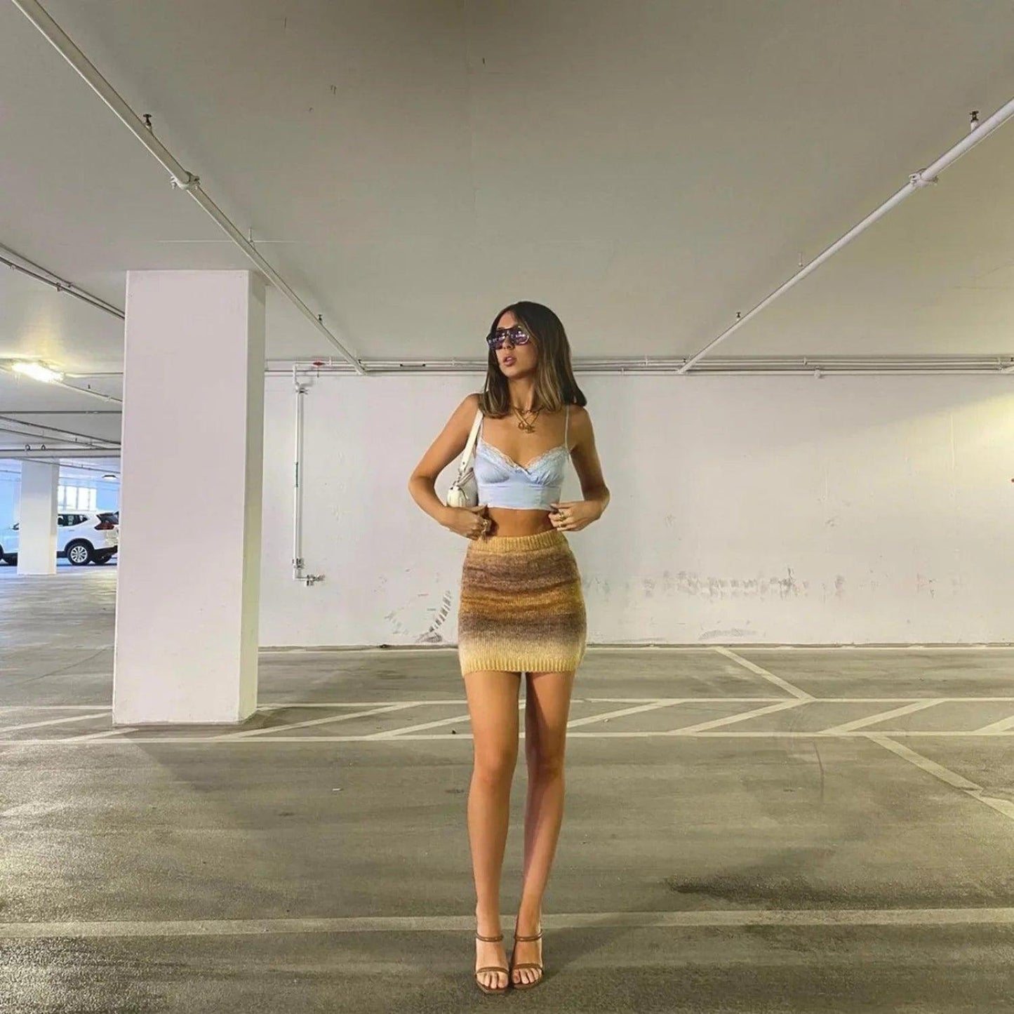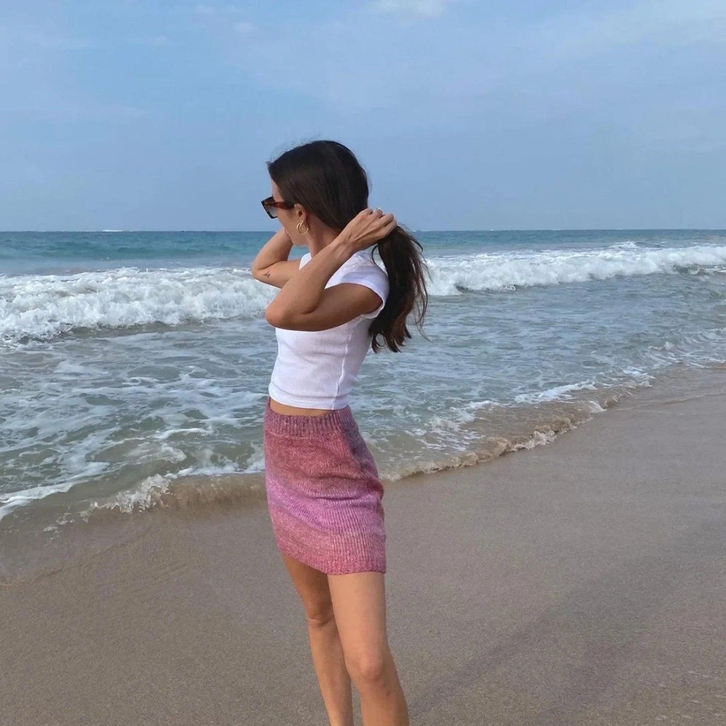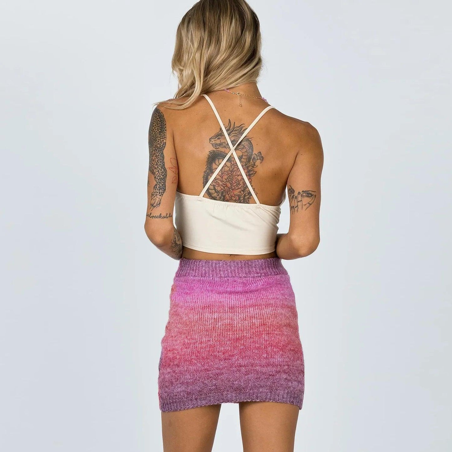 Knitted Mini Skirt Bodycon Tie-dye Ombre Skirt
